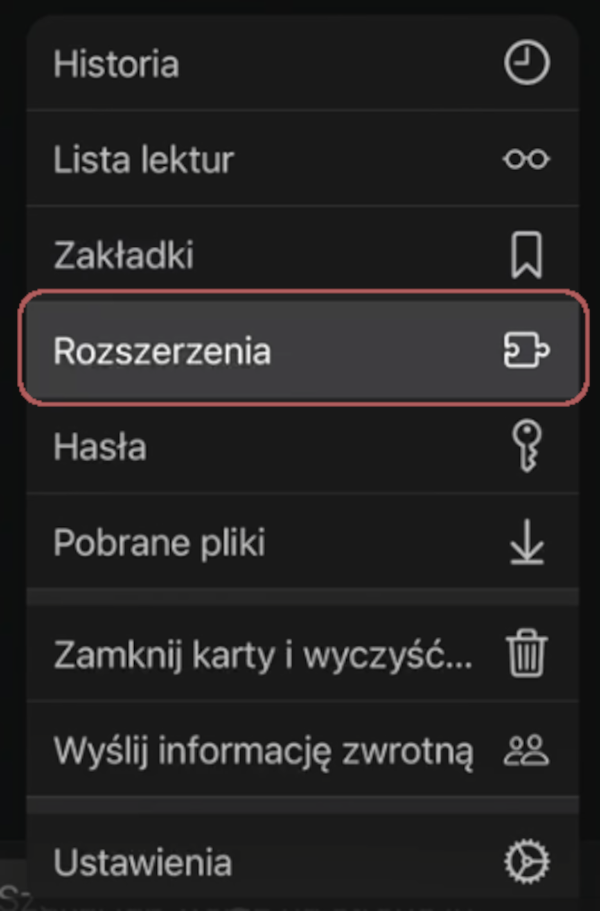 9 Click Extensions in the menu.