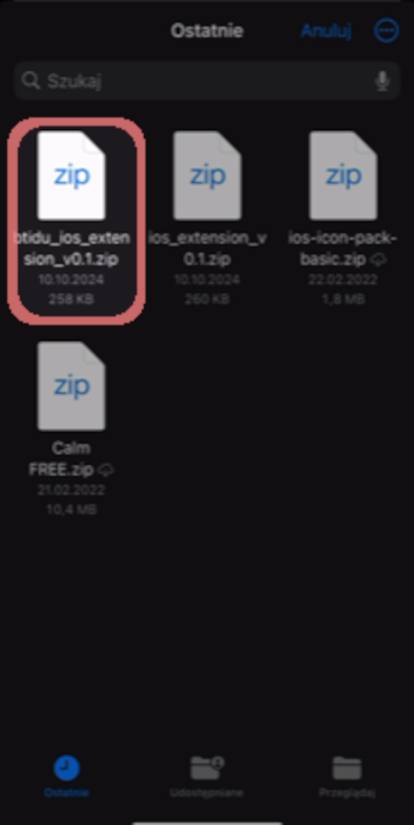 11 Choose the previously downloaded file, btidu_ios_extension_v0.3.1.zip.